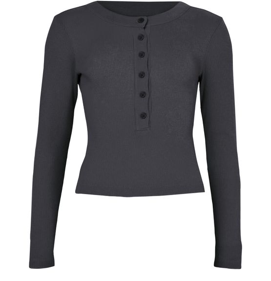 Reveal Citizens of Humanity's Varra Henley long-sleeved top, crafted in ribbed fabric for a refined texture. The crew neck and button fastening add a modern touch, while the long sleeves offer versatile styling. Perfect for layering or wearing solo, this top elevates any contemporary wardrobe.