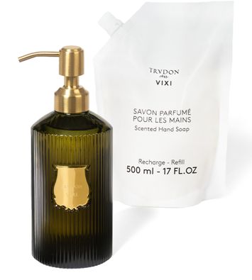 This liquid soap refill extends the pleasure of your Trudon perfumed hand soap. A gentle and delicately scented formula with the fresh notes of petitgrain, the aromatic depth of sage, and the enveloping warmth of sandalwood. A cleansing ritual that combines pleasure and responsibility.