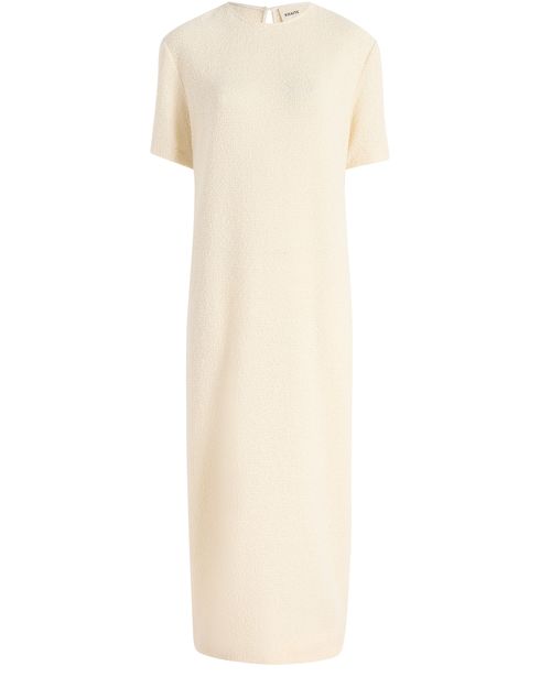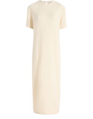 Reveal Khaite's maxi dress, a refined piece featuring a round neck and short sleeves for a timeless silhouette. The flowing length and understated design make it ideal for both daytime gatherings and evening occasions, offering effortless sophistication with every wear.