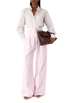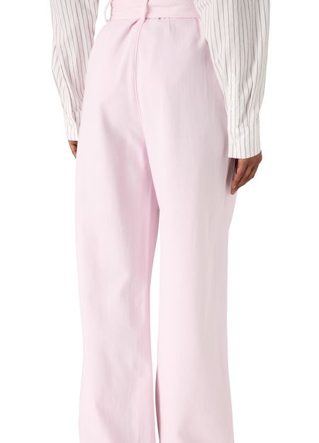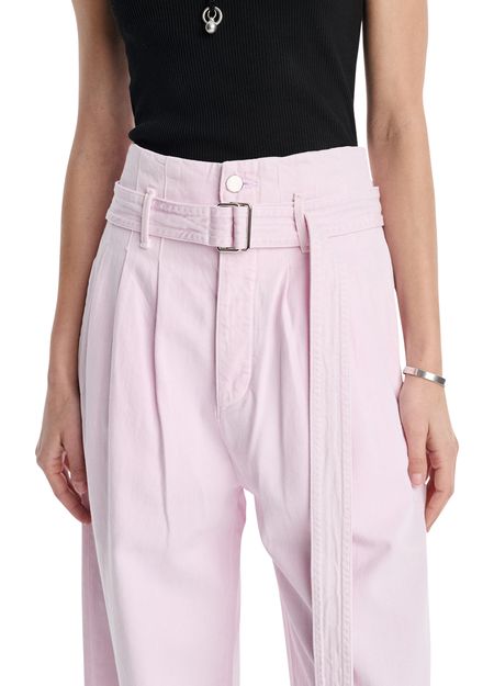 A sculpted, corset-inspired jean in a sun-faded Stone Wash Powder Pink– crafted from a conscious mix of 60% organic cotton and 40% Refibra Lyocell, derived from upcycled cotton waste. Finished with clean seaming and custom-made silver shank hardware, it is feminine in hue and redefines denim tailoring through circular design.