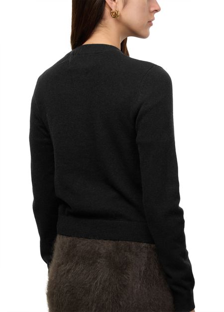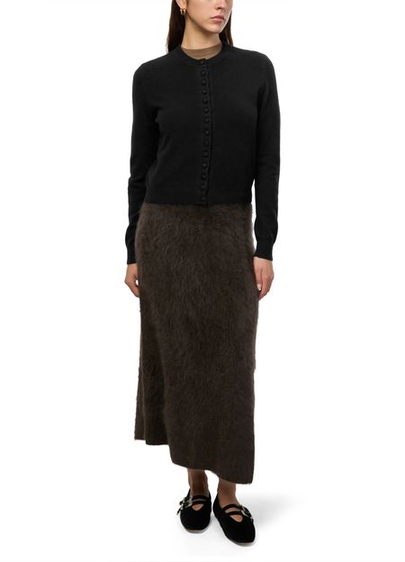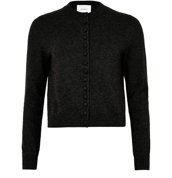 Reveal Lisa Yang's marled ribbed crop cardigan, featuring a crew neck and long, cuffed sleeves. The button fastening and textured finish create a refined silhouette, perfect for layering over tailored trousers or pairing with high-waisted denim for a modern, versatile look.