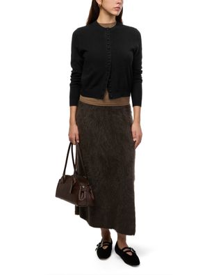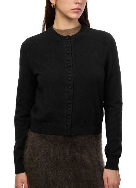 Reveal Lisa Yang's marled ribbed crop cardigan, featuring a crew neck and long, cuffed sleeves. The button fastening and textured finish create a refined silhouette, perfect for layering over tailored trousers or pairing with high-waisted denim for a modern, versatile look.