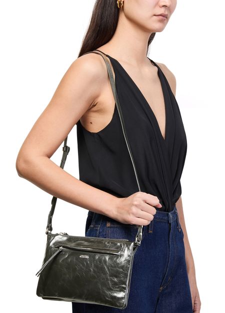 Reveal Isabel Marant's Winna Duo crossbody bag, crafted from smooth leather with a refined gold finish. The adjustable thin strap and zippered front pocket offer both style and practicality, while the gold-letter logo and visible stitching highlight the brand’s signature attention to detail.