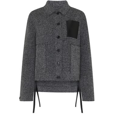 Loewe's Workwear-style wool jacket boasts a shorter front design with a front buttoned closure for effortless style. Its long-sleeved silhouette is perfect for layering, while the appliquéd logo adds a touch of sophistication. With two front patch pockets, this casual jacket combines functionality and fashion seamlessly.