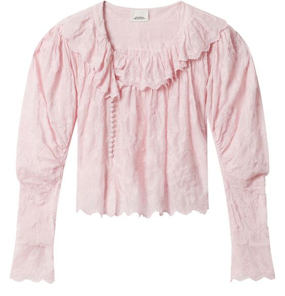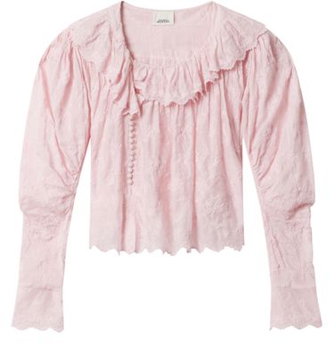 Reveal Isabel Marant's Zelly blouse, a masterpiece of elegance with its round neck and ruffled long sleeves. The floral embroidery adds a touch of sophistication, while the button fastening ensures a perfect fit. This top effortlessly transitions from day to night, making it a versatile wardrobe staple.
