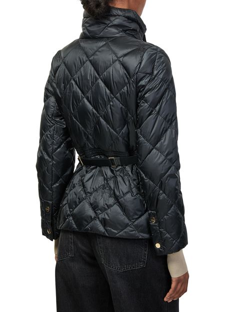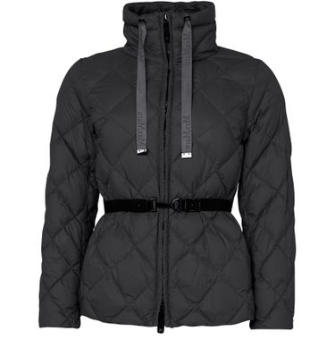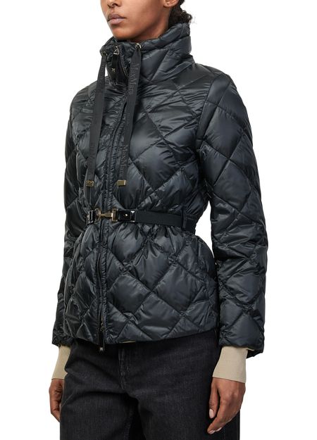 Reveal Max Mara's zip-up puffer jacket, crafted from smooth leather with a diamond pattern and padded texture. The short, long-sleeved silhouette features a high neck and zipper closure, finished with topstitched edges. Lined for comfort, this versatile piece transitions seamlessly from casual to elevated looks.