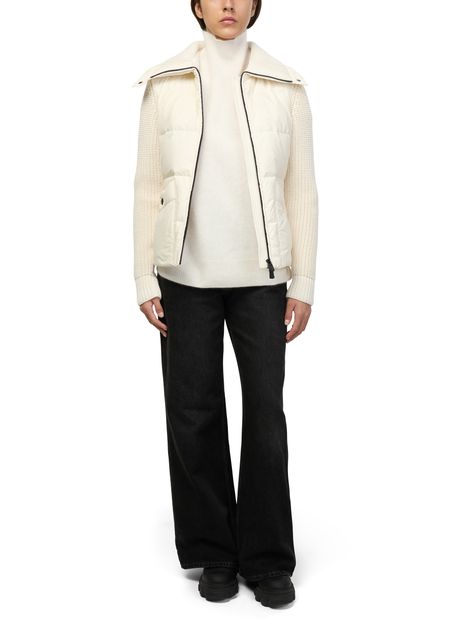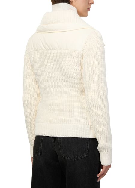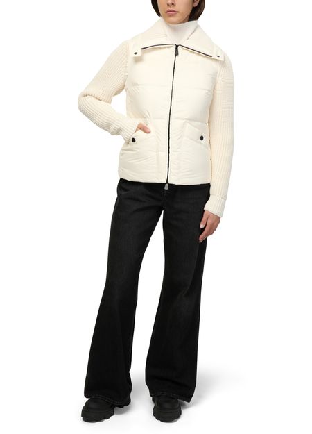 Reveal Moncler Grenoble's zippered cardigan, crafted from bi-material fabrics for a refined, modern look. Embellished buttons and an embroidered logo add distinctive flair, while ribbed accents and a sleek zipper closure ensure comfort and versatility for any occasion. Long sleeves complete this sophisticated essential.