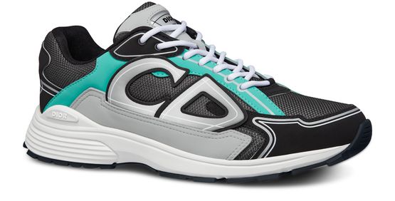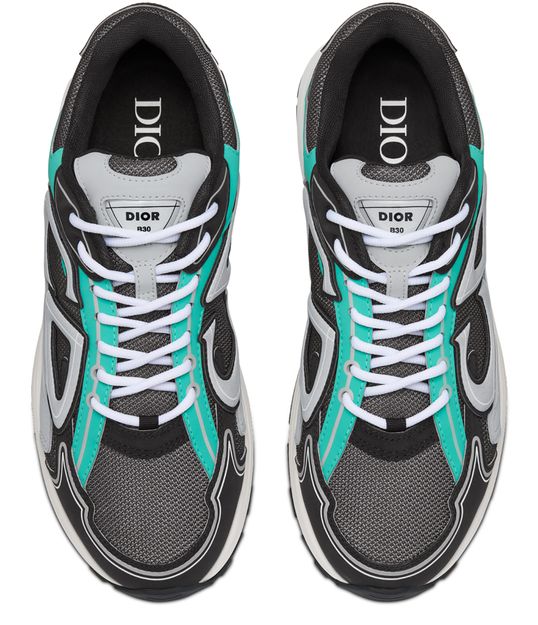 Reveal Dior's B30 Sneakers with their striking light blue mesh and Dior gray, white, and blue technical fabric. These low-top sneakers feature reflective 'CD30' signatures, a sculpted rubber outsole, and a two-tone sole. The calfskin and technical mesh lining ensure comfort and style, complete with a dust bag.