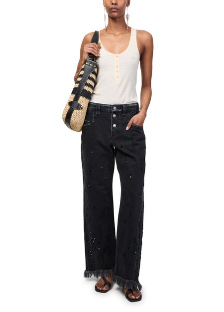 Reveal Isabel Marant's Bayia raffia shoulder bag, a masterpiece of open weave design with a striking striped print. This elegant accessory features a single handle and visible stitching, showcasing the brand's attention to detail. The front logo adds a touch of sophistication, making it a must-have for any fashion-forward wardrobe.
