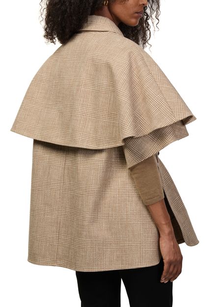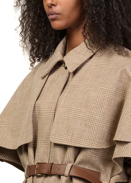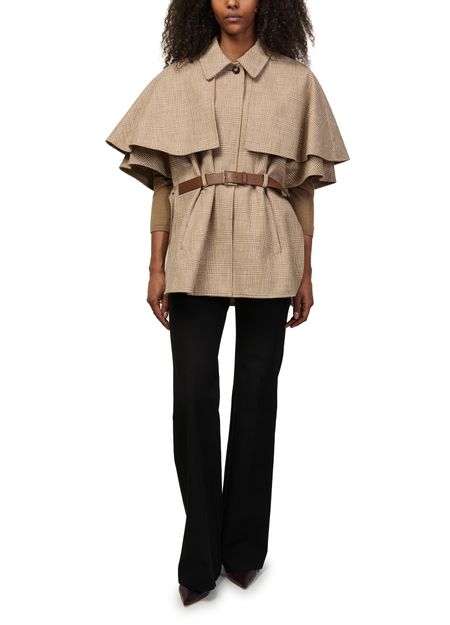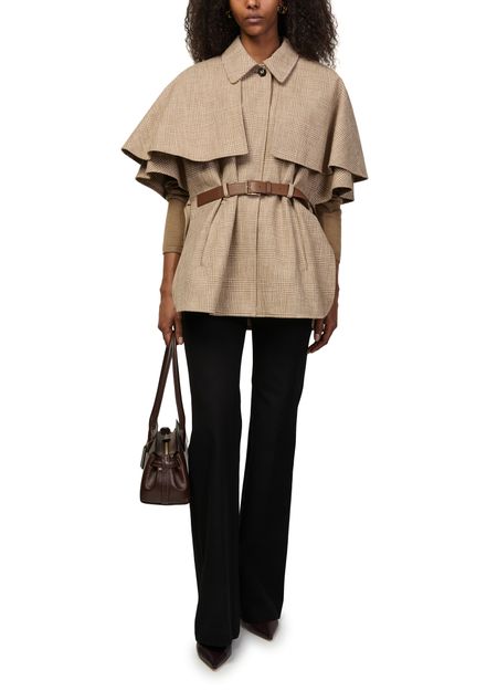 Reveal Max Mara's belted cape, featuring a refined checked pattern and short sleeves for a contemporary silhouette. The button fastening adds a polished touch, while the soft texture ensures comfort. This versatile piece transitions seamlessly from day to evening, making it a standout in any modern wardrobe.