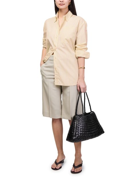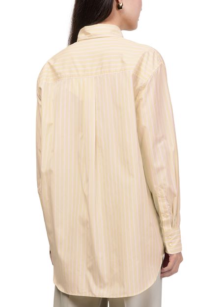 Reveal Soeur's Carlotta shirt, a refined top featuring long, cuffed sleeves and a crisp striped print. The front buttoned closure and subtle breast pocket add a tailored touch, making this shirt a versatile choice for both professional and casual ensembles.
