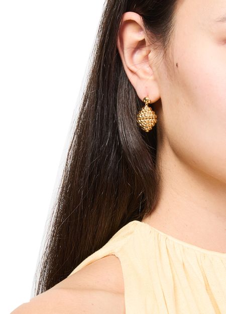 Reveal Toteme's cord pendant earrings, crafted with a radiant gold finish and secured by a sleek post-back closure. These earrings offer a refined silhouette, perfect for elevating any ensemble with a touch of modern sophistication and effortless style.
