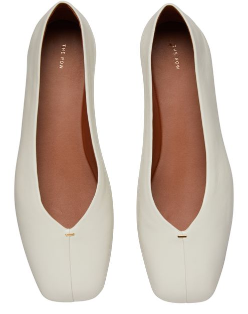 The Row Eva ballerinas are a sleek and minimalist addition to any wardrobe. With a thin sole and flat heel, they offer comfort and versatility. The square toe adds a modern touch, while the logo-printed insole and smooth leather provide a luxurious finish.