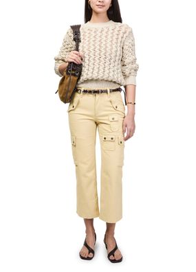 Reveal Isabel Marant's Josine cargo pants, crafted with a belted waist and calf-length silhouette for a refined yet relaxed look. Side and patch pockets add practical flair, while the buttoned zipper closure ensures a secure fit. Perfect for elevating both casual and polished ensembles.