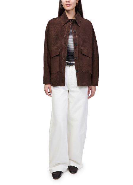 Reveal Arma's Kaylee suede jacket, crafted with a refined front buttoned closure and long sleeves for a timeless silhouette. Flap and patch pockets add both style and practicality, while the supple suede texture ensures a sophisticated finish. Effortlessly versatile, this piece transitions seamlessly from day to evening.