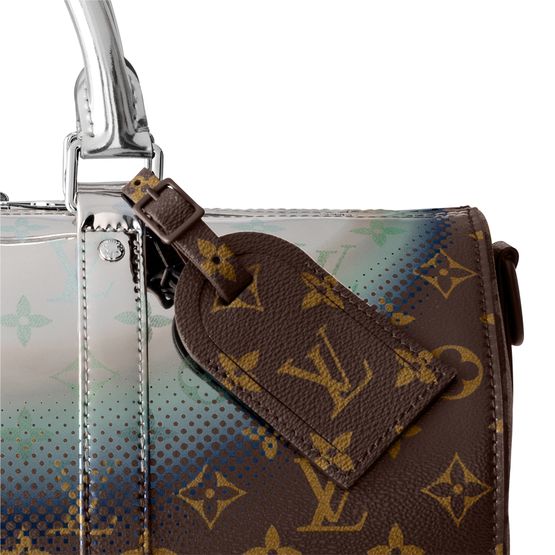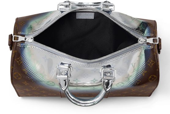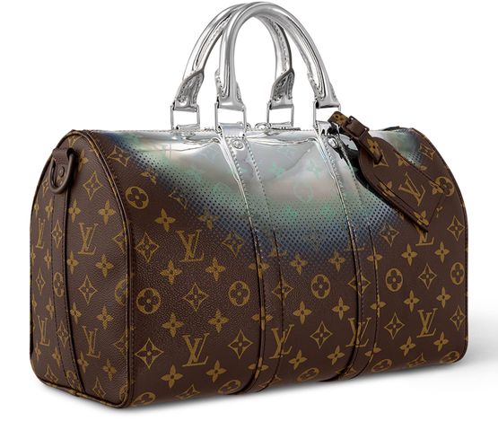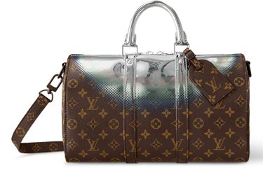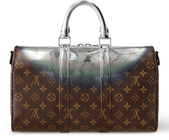The House’s past and future collide in this stunning Keepall Bandoulière 35 bag in Metallic Nebula coated canvas. Classic Monogram canvas is topped with a halo of silver, blue and purple as if touched by some space-age King Midas. Two rolled leather top handles and an adjustable and removable strap give carry options.