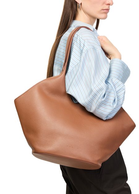 Reveal Aesther Ekme's Phantom tote bag, crafted from grained leather with double handles for effortless carrying. The spacious interior compartment and contrast lining combine practicality with refined style, making this tote a standout accessory for modern wardrobes.