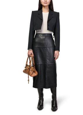 Reveal Chloe's Phoenix boots, crafted from smooth leather with a pointed closed toe and a high block heel for a striking silhouette. The side zipper ensures easy wear, while visible stitching and a leather outer sole add refined detail. Elevate your look with this modern statement.