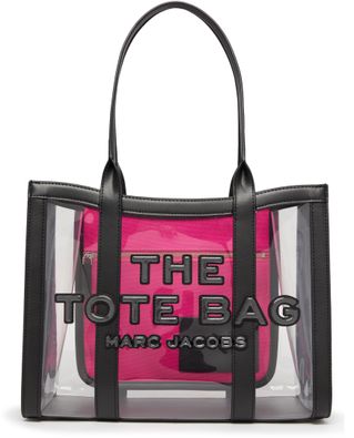 Marc Jacobs's Clear Medium Tote bag is the perfect shopper for any occasion. Hand carried or worn on the shoulder, its double handles offer versatility. The zippered interior pocket keeps essentials secure, making it a stylish companion for your daily adventures or spontaneous outings, effortlessly blending practicality with chic design.