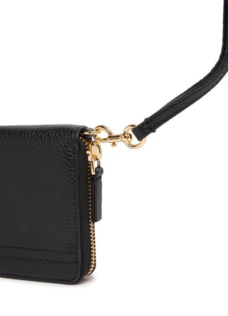 • Description : Continental wallet, grained leather, leather handle, front logo, front patch pocket, multiple card compartments, zippered pocket for change / Zippered pocket for coins, zipper fastening.
