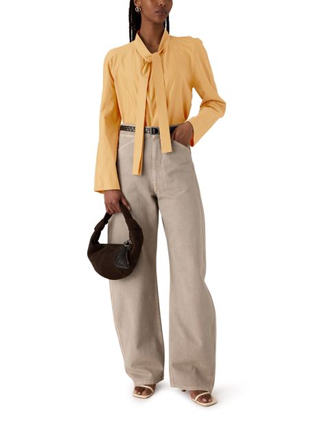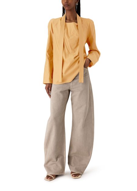 Reveal Lemaire's Ascot long-sleeved blouse, a refined essential with a sleek silhouette. The elevated neckline and extended sleeves create a sophisticated look, while the smooth finish ensures effortless pairing with tailored pants or skirts for both work and evening occasions.