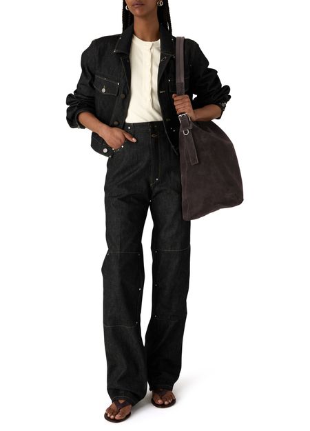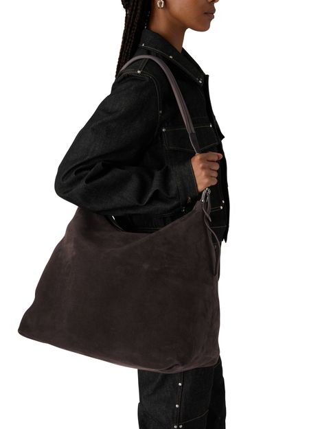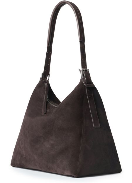 Reveal Lemaire's Belted hobo bag in suede, crafted from sumptuous suede with a single handle and sleek zipper closure. The silver finish adds a refined touch, while the shoulder design ensures effortless sophistication for any occasion. Experience the perfect blend of modern style and practical elegance in this standout piece.