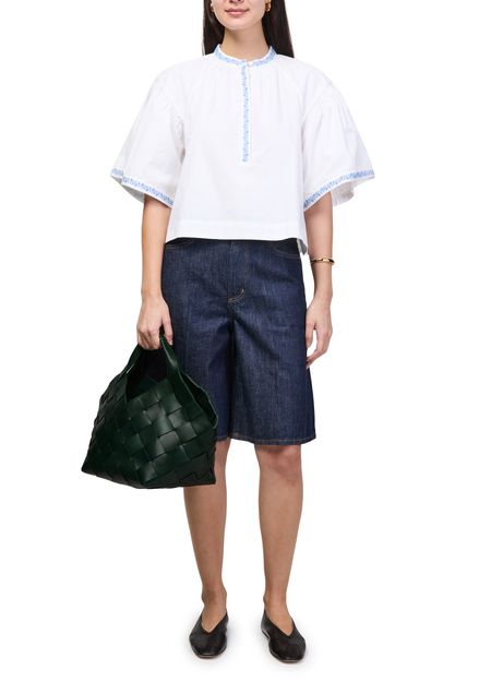 Reveal Dragon Diffusion's Botteghe shoulder bag, crafted with double handles for versatile carrying. The spacious interior compartment and secure drawstring closure blend practicality with refined design. An interior pocket adds thoughtful organization, making this piece a standout for modern sophistication.