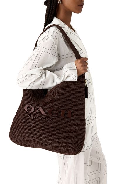 Reveal Coach's Brooklyn 39 hobo bag, where a decorative label with an embossed Coach logo meets a single handle and gold-finish hardware. The magnetic closure and large interior compartment offer both style and practicality, while visible stitching adds a refined touch to this modern shoulder essential.