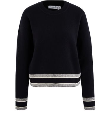• Description : Christian Dior' signature, ribbed crewneck, long sleeves, contrasting banded cuffs and hem..