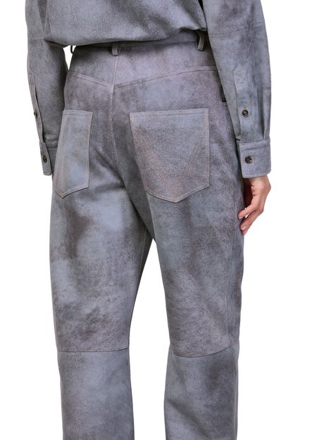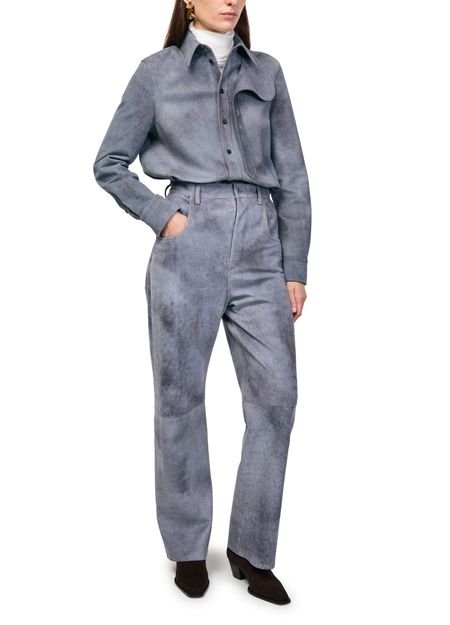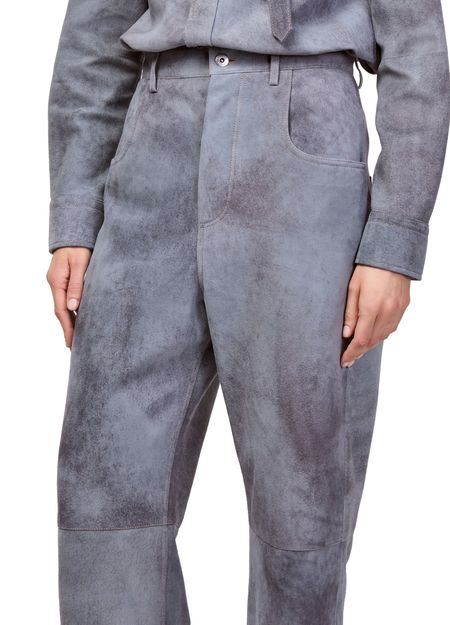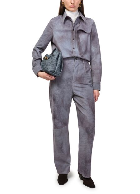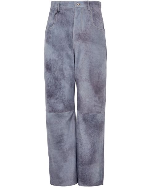 Reveal Bottega Veneta's Cloudy suede trousers, crafted with a belted waist and ankle-length silhouette. The marbled effect and visible stitching add a modern twist, while front and back pockets ensure practicality. Buttoned zipper closure and belt loops complete these versatile trousers for effortless sophistication.