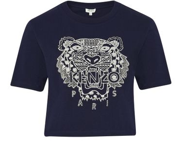 This Kenzo cropped Tiger t-shirt bears the iconic imprint of the house. Made in soft, comfortable navy blue cotton, it will go well a pair of high-waist 'mom' jeans and a pair of colourful trainers.