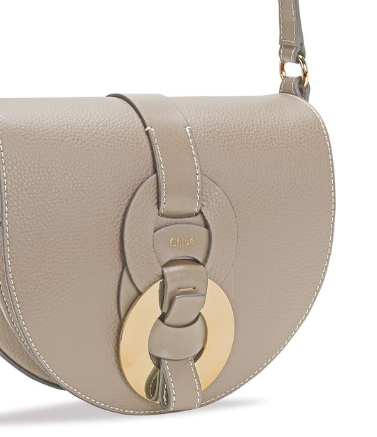 This small Darryl shoulder bag is a rounded accessory made from grained and smooth calfskin leather. A Chloé creation, this saddlebag design features an adjustable leather shoulder strap, a magnetic clasp decorated with a ring, a main compartment and a flat inside pocket, all enhanced by contrasting stitching. This very practical piece features a flat back pocket.