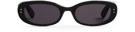 Reveal Dior's Dior Oblique B1I. These sunglasses feature gray lenses and temples adorned with a gold-finish metal Dior Oblique logo. Enjoy 100% UVA/UVB protection with filter category 3, and the option to fit prescription lenses.
