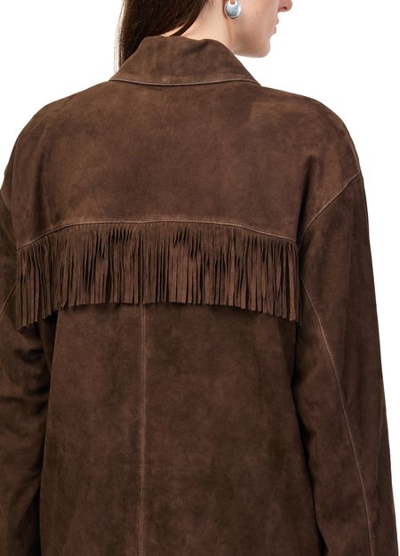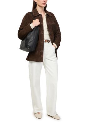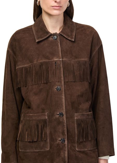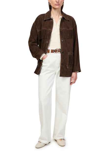 Discover the Foudre fringe suede jacket by Nili Lotan, a relaxed piece crafted from supple suede. Featuring dropped shoulders, long sleeves, and front patch pockets, it stands out with hand-cut fringe detailing that enhances its bold character. Finished with a front button closure and a slightly loose fit, it is an easy layering piece that adds a distinctive touch to everyday outfits as well as...