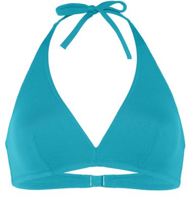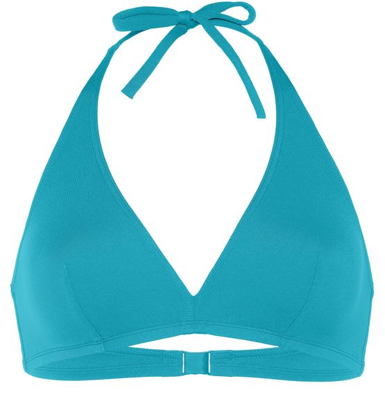 • Description : Full-cup triangle bikini top, halter tie spaghetti straps, bust darts, side stays, thin back.