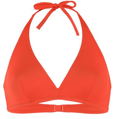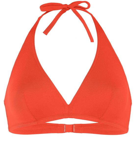 • Description : Full-cup triangle bikini top, halter tie spaghetti straps, bust darts, side stays, thin back.