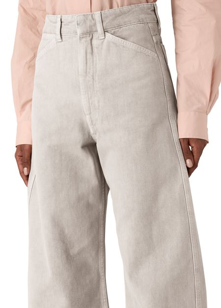Reveal Lemaire's High-waist curved pants, crafted with a buttoned zipper closure and two front pockets for effortless style. Visible stitching and belt loops add refined detail, while the relaxed fit ensures comfort. Perfect for versatile dressing, this piece transitions seamlessly from day to night.