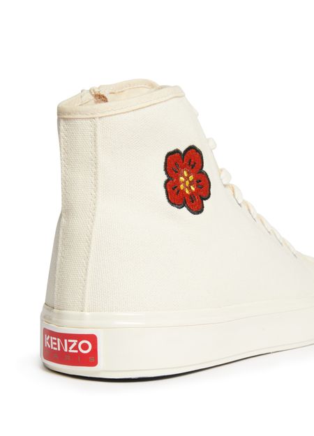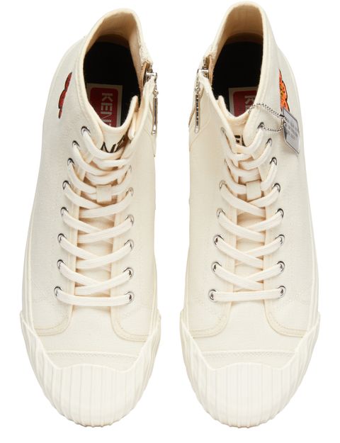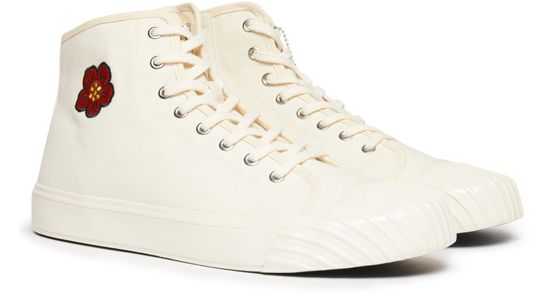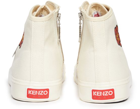 Kenzo's school sneakers are stylish lace-up shoes that blend comfort and flair. Adorned with a vibrant floral pattern, they showcase contrast details that elevate any outfit. The iconic logo insole adds a touch of brand recognition, making these sneakers a perfect choice for those who embrace unique fashion statements.