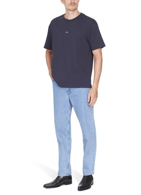 This short-sleeved t-shirt from APC features a classic round neck and ribbed detailing for a comfortable fit. The visible stitching adds a subtle touch of craftsmanship. The logo printed on the front accents the straight cut design, creating a minimalist and timeless look suitable for any casual occasion.