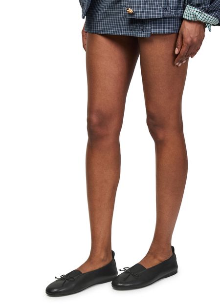 Reveal Miu Miu's leather ballet flats, crafted from smooth leather with a refined round toe and low, flat heel. Visible stitching and a gold-lettered logo at the back add signature flair, while the logo-printed insole ensures comfort and unmistakable brand recognition for every step.