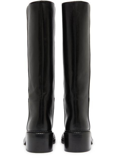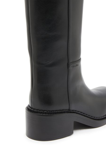 Step into sophistication with Prada's Leather boots. The high-top upper showcases visible stitching, while the round toe adds a classic touch. With a low block heel, these boots offer comfort without sacrificing style. Perfect for any occasion, they effortlessly elevate your ensemble, making every step a statement of elegance.