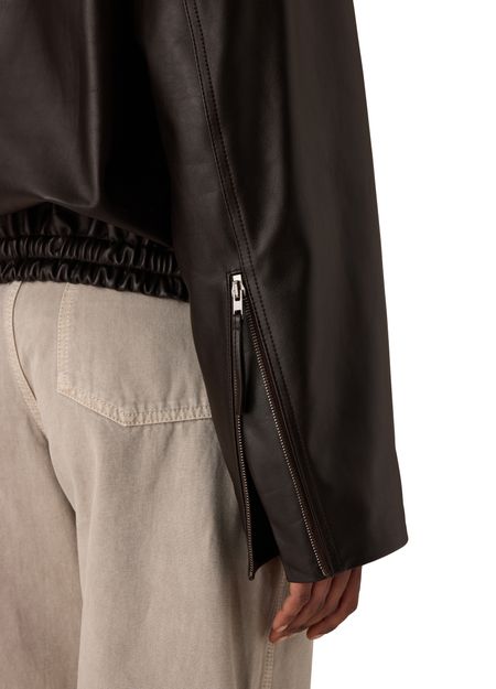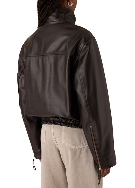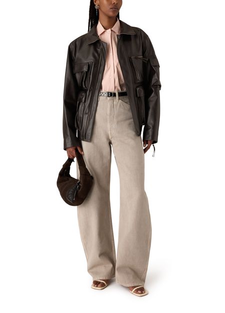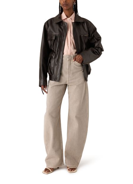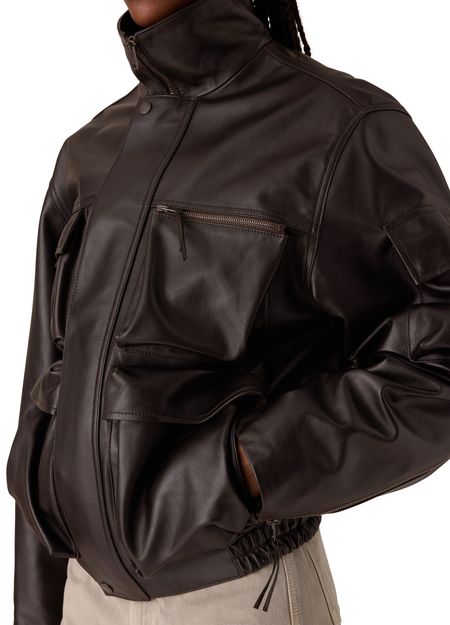 Reveal Lemaire's leather jacket with pockets, designed with a high neck and long sleeves for a refined silhouette. The zipper closure and practical flap pockets add modern functionality, while the versatile style transitions effortlessly from day to night. Distinctive patch pockets complete this contemporary essential.