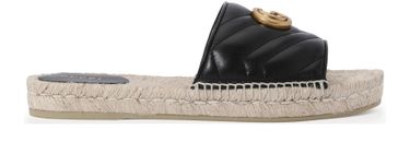 These leather mules are Gucci's imaginative interpretation of the flip-flop and espadrille combined. The shoes feature the fashion house's iconic design, a thick rope sole, and a black leather woven vamp embellished with the gold Gucci logo. Pair these mules with a denim skirt or cropped faded jeans with fringe to get a feminine, sophisticated look.