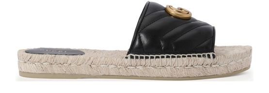 • Description : Mules, metallic logo on the front, quilted Golden finishes, cord sole, smooth leather, pull-on design.