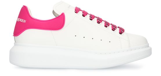 These elegant oversized leather sneakers have a sleek design that plays with contrasting shades of color. The two-tone pattern appears in the lacing and the Alexander McQueen signature on the back.