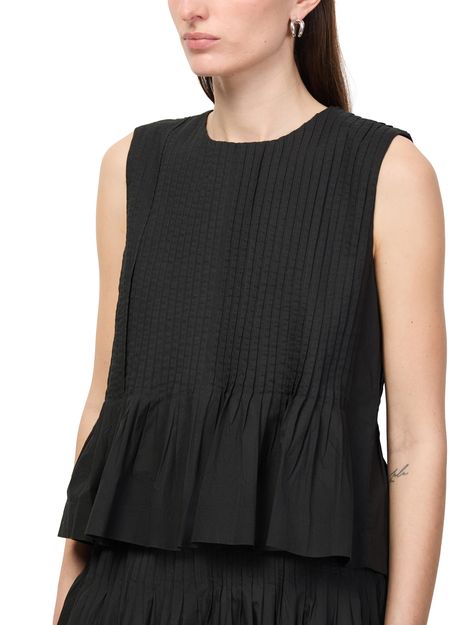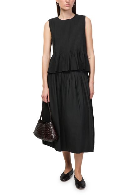 Reveal Skall Studio's Pavlova sleeveless top, a refined piece featuring a round neck and a streamlined silhouette. The soft fabric and minimalist design make it ideal for layering or wearing solo, seamlessly transitioning from day to evening with effortless sophistication.