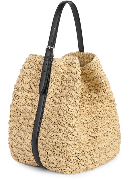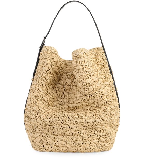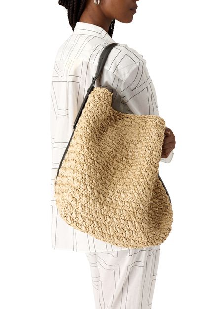 Reveal Toteme's Belted raffia tote bag, designed with a single handle and a spacious interior compartment. The silver finish adds a refined touch, making this tote a standout accessory for modern wardrobes. Experience effortless style and practical elegance in every detail.