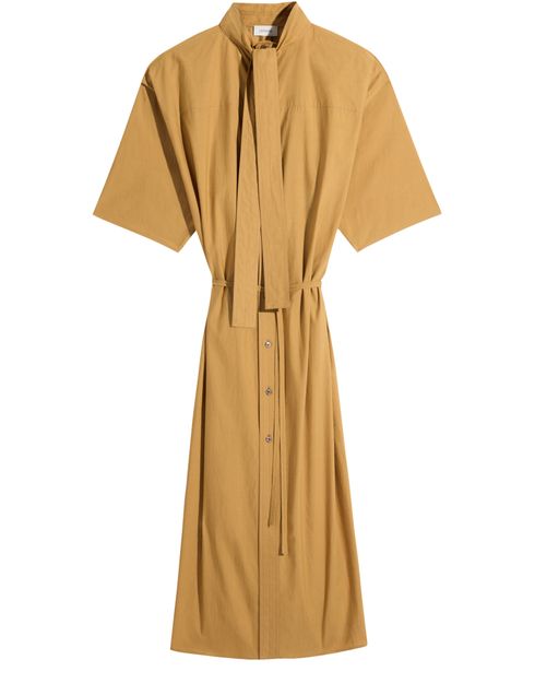 Reveal Lemaire's reversible tube dress, featuring a dropped sleeve and short-sleeved silhouette. The button fastening and side slit add a modern edge, while side pockets offer practicality. This versatile piece transitions effortlessly from day to evening, making it a refined choice for any occasion.