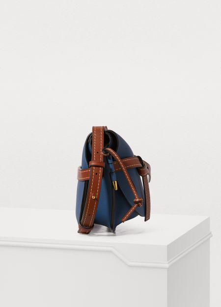 The Small Gate crossbody bag is designed by Loewe. This calfskin leather piece uses a rounded design enhanced by a closure system with stylised straps.
