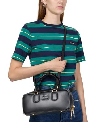 • Description : Decorative label with "Miu Miu" logo, crew neck, short-sleeved, striped print, breast pocket.